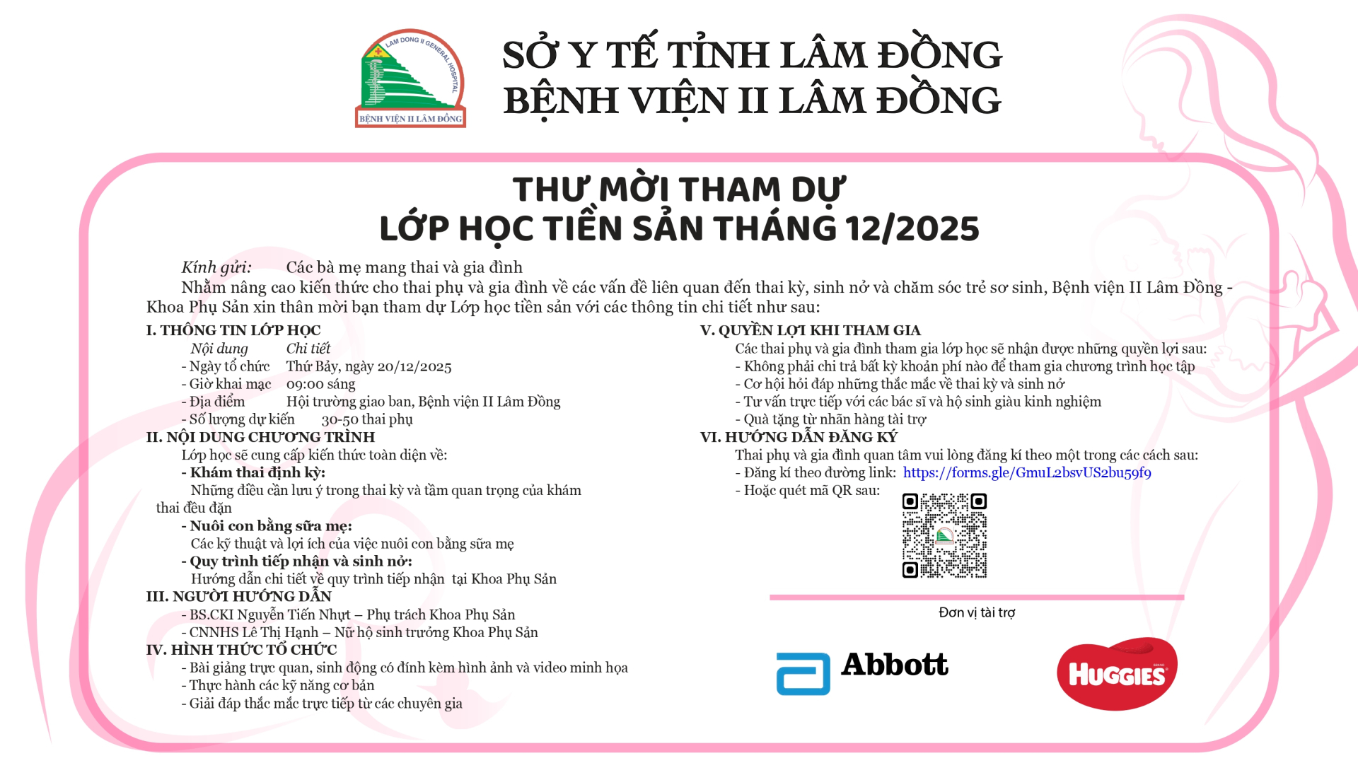 Rất mong nhận được sự quan tâm và tham gia của Quý mẹ bầu. Bệnh viện hân hạnh đồng hành cùng bạn trong hành trình chào đón bé yêu.